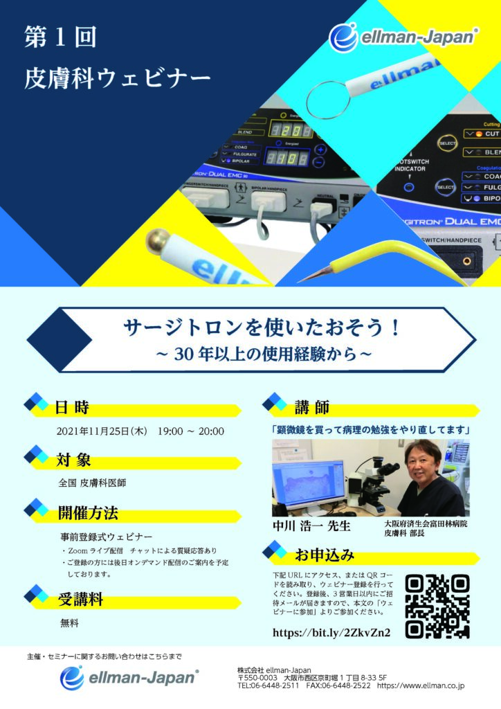 第1回皮膚科ウェビナー「サージトロンを使いたおそう! ~30年以上の使用経験から~」
