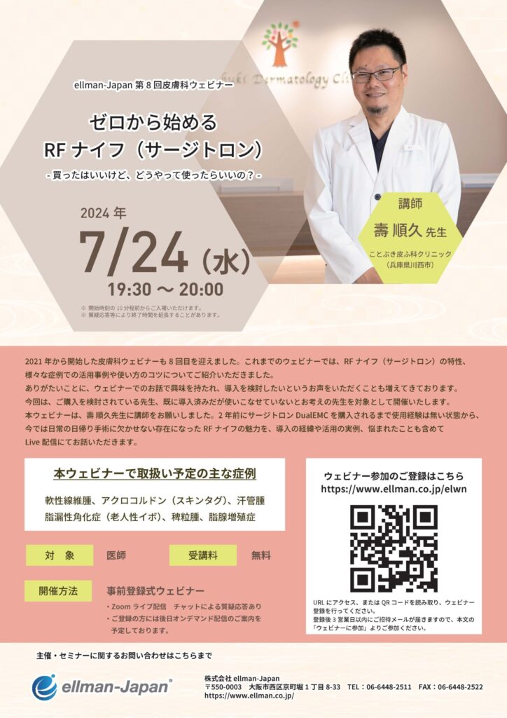 第8回皮膚科ウェビナー「ゼロから始めるRFナイフ(サージトロン) -買ったはいいけど、どうやって使ったらいいの? -」
